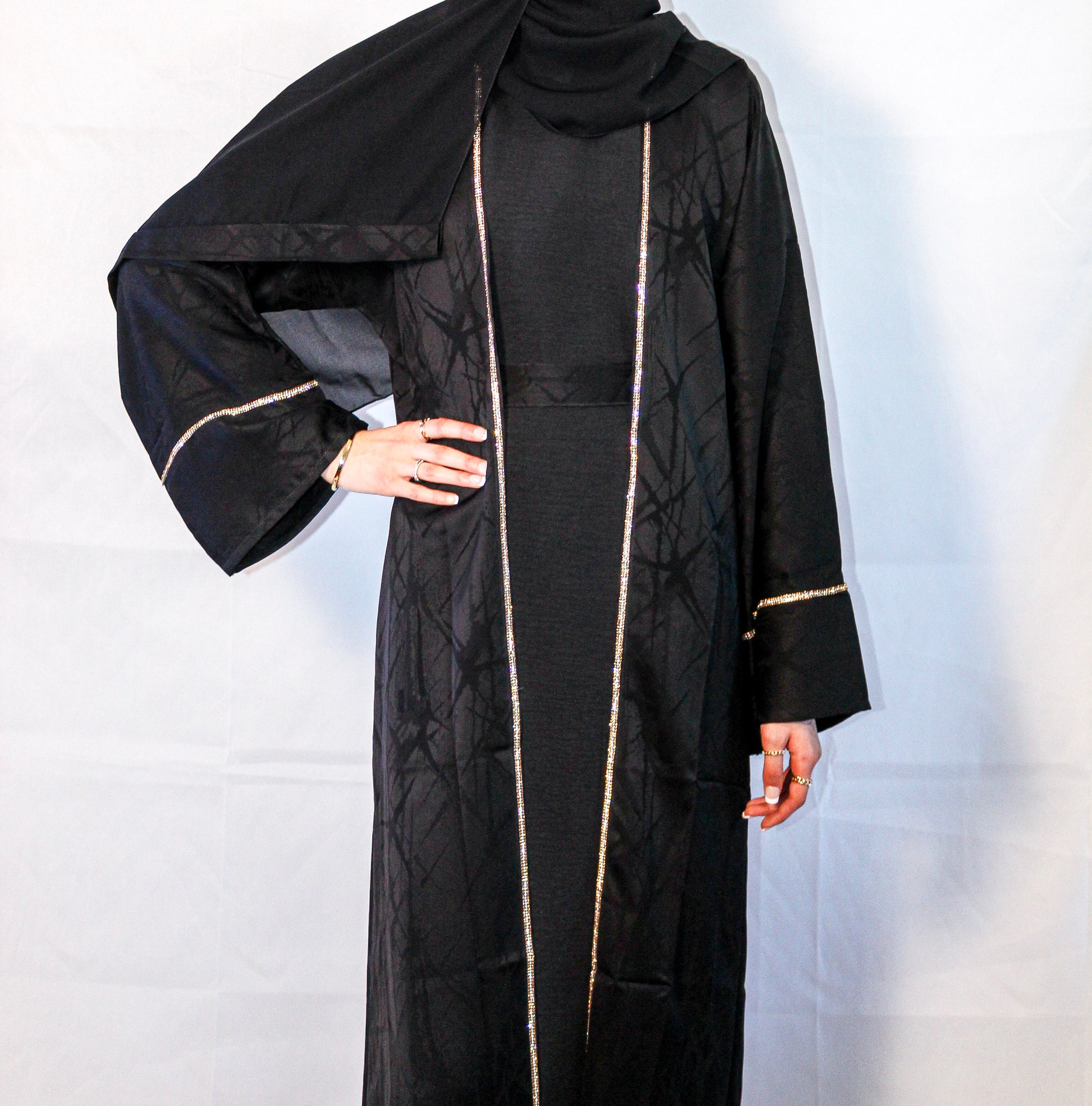 The Amira Luxe Abaya is a complete luxury set including a matching hijab, belt, and inner dress, designed for effortless elegance. This exquisite abaya features a sophisticated flow with subtle bedazzling, adding the perfect touch of sparkle. Ideal for Eid celebrations, special gatherings, or any occasion, it blends modesty and luxury with ease. Crafted from premium fabric, it ensures both comfort and grace, making it a timeless addition to your wardrobe.