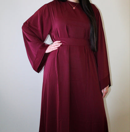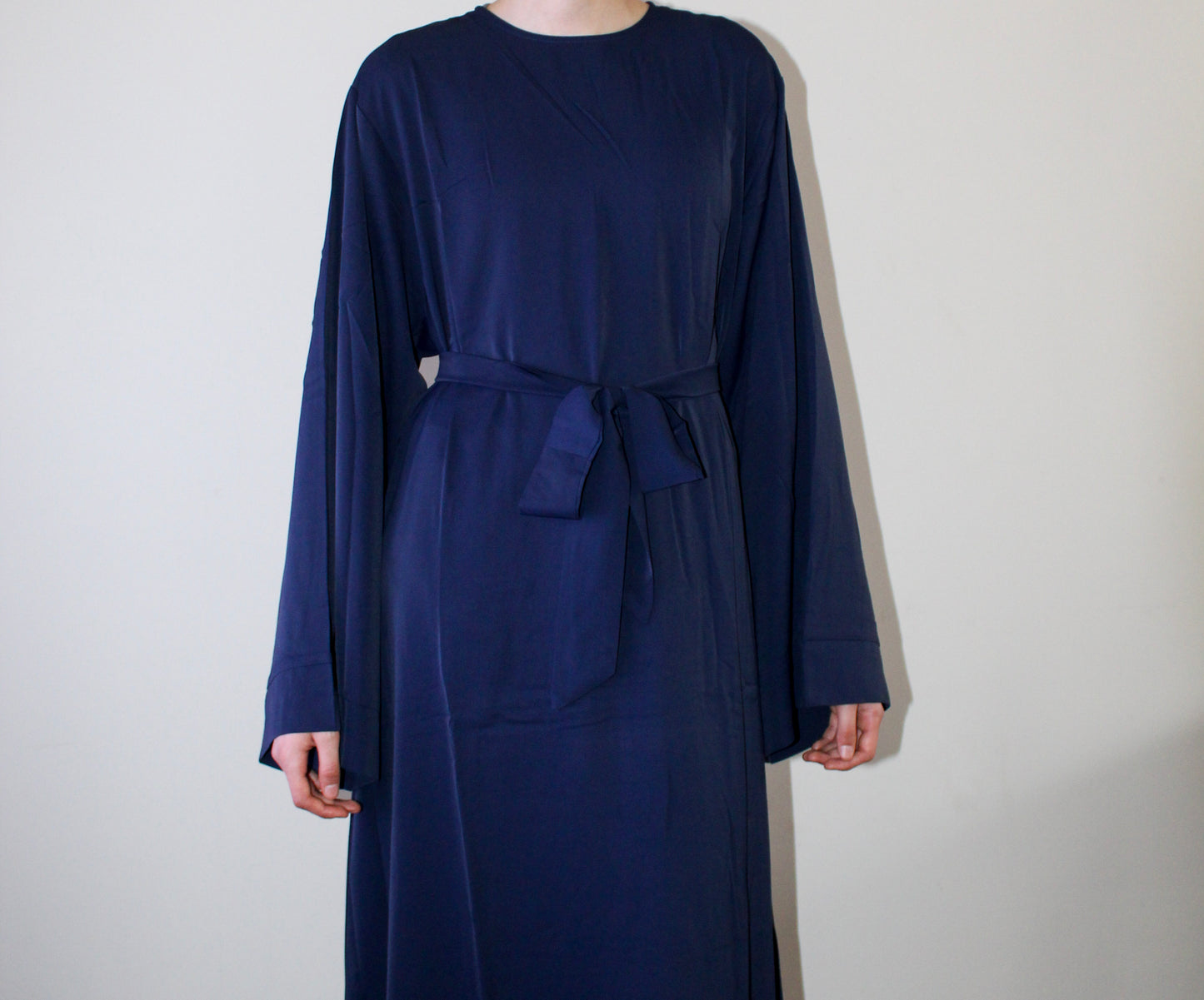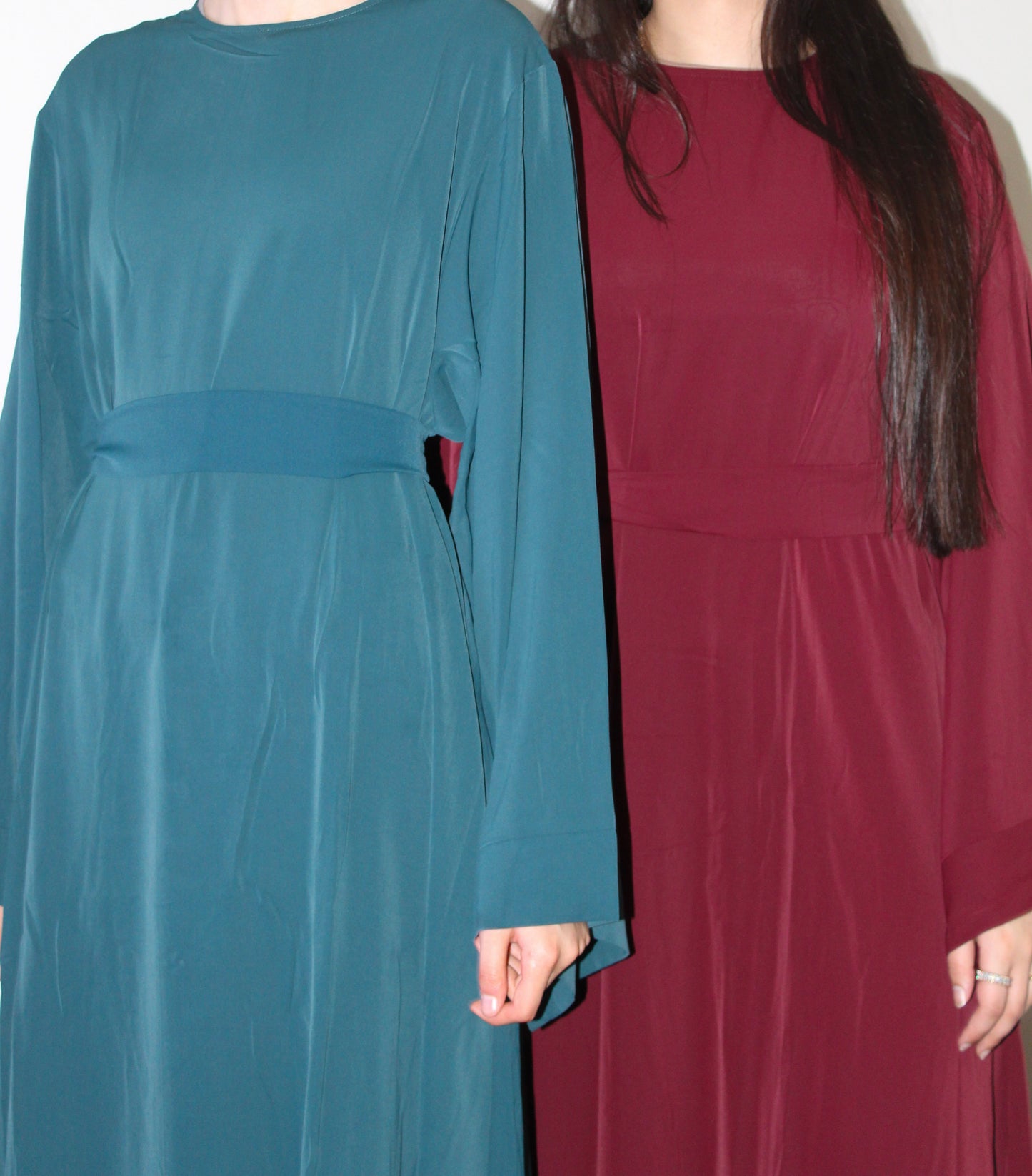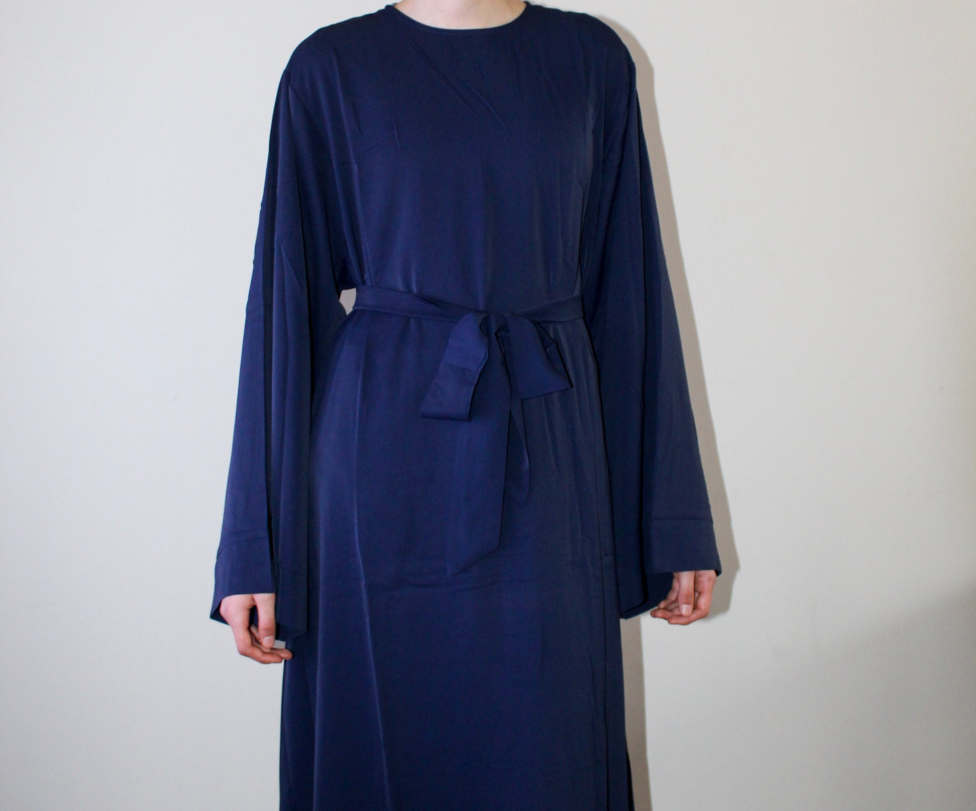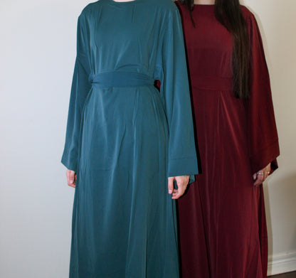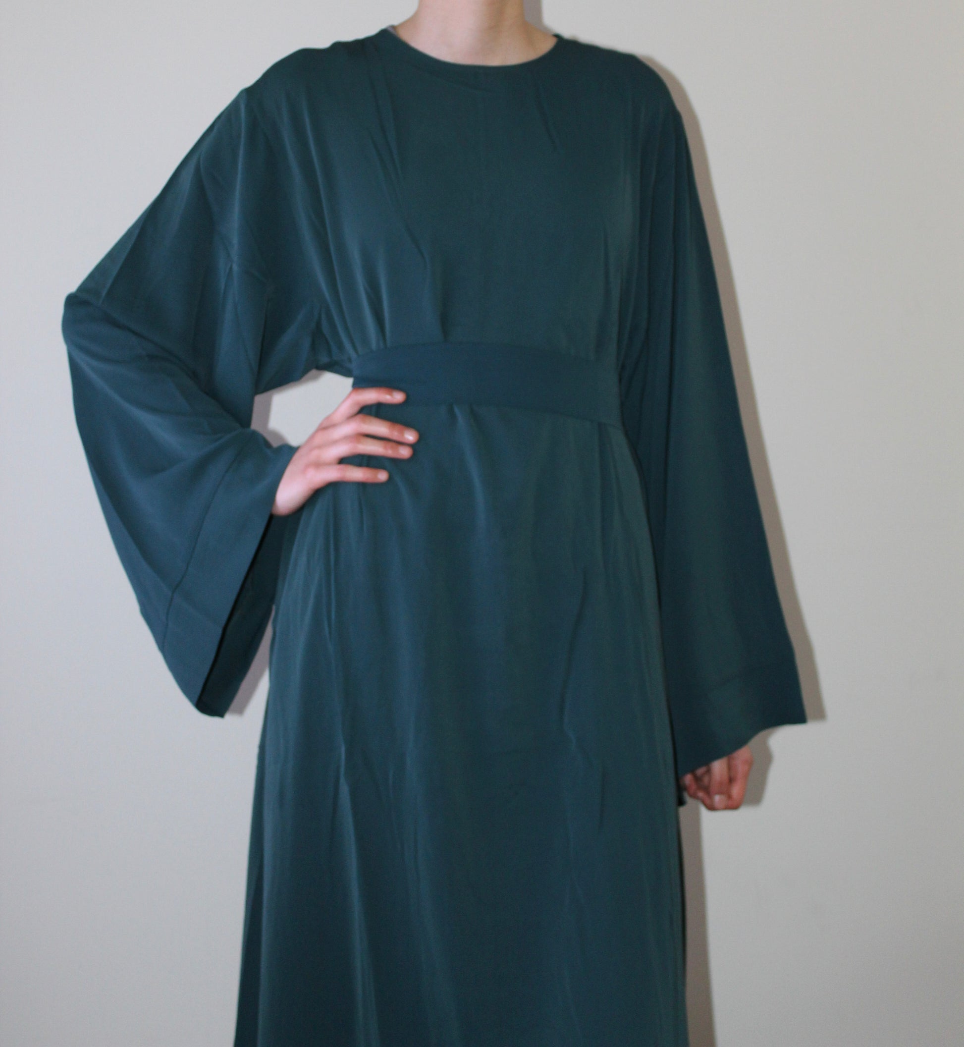 This Nida Dress is perfect for women seeking versatile, modest wear that seamlessly transitions between occasions. Made from premium Nida fabric, this dress is lightweight, soft, and ideal for all-day wear. Its graceful design features flowing flared sleeves, a belted waist for a customizable fit, and a clean, minimal silhouette that radiates sophistication.
