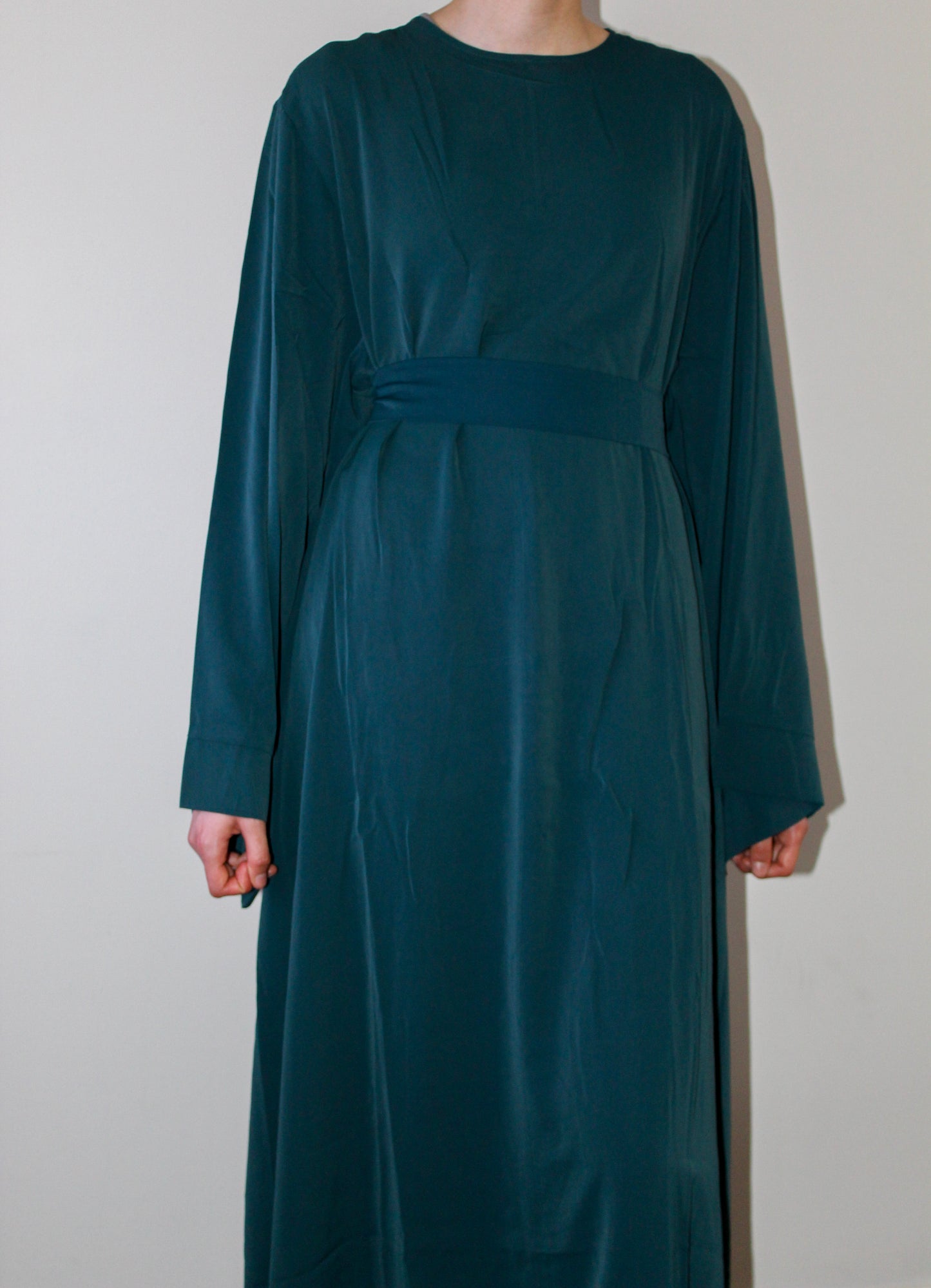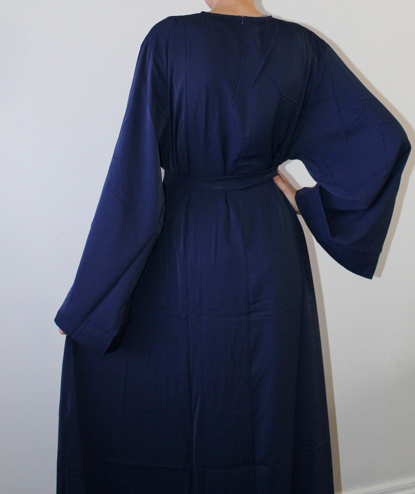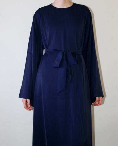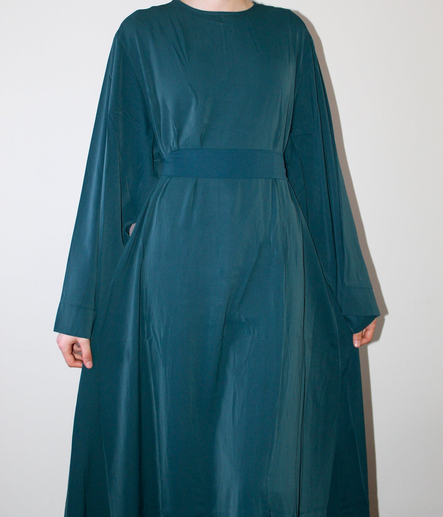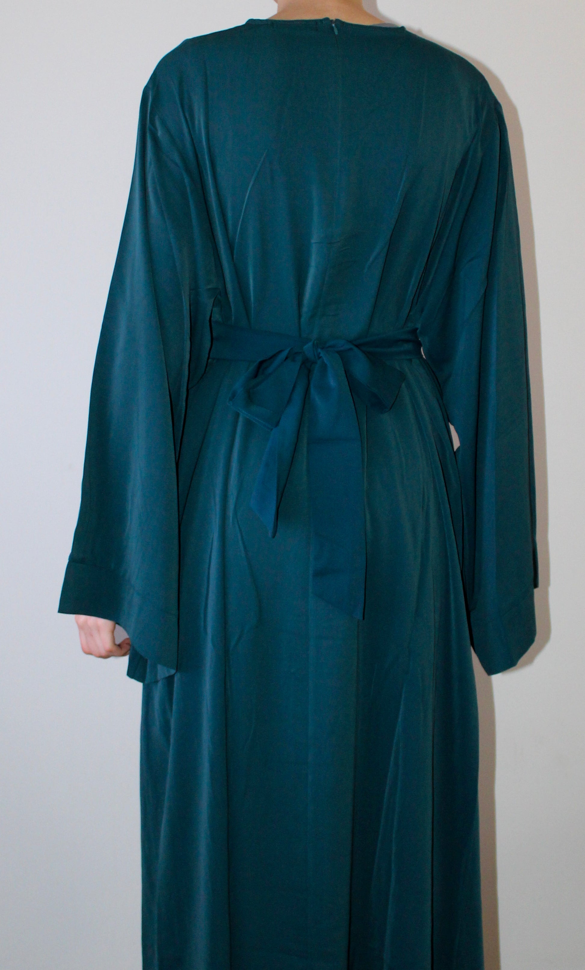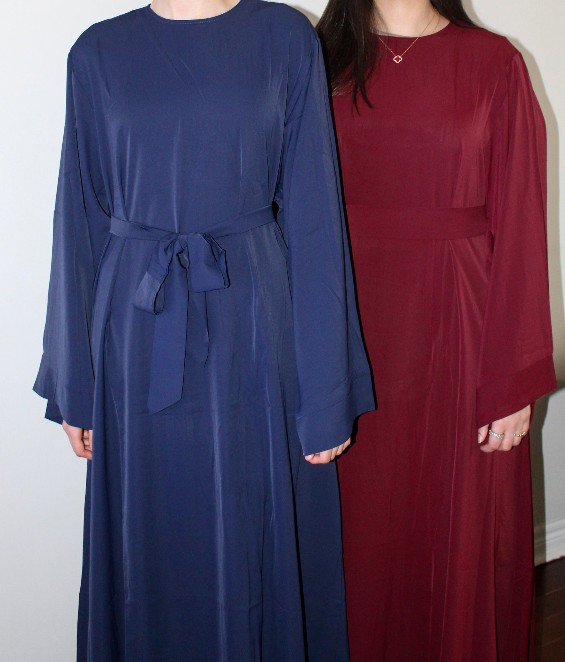 This Nida Dress is perfect for women seeking versatile, modest wear that seamlessly transitions between occasions. Made from premium Nida fabric, this dress is lightweight, soft, and ideal for all-day wear. Its graceful design features flowing flared sleeves, a belted waist for a customizable fit, and a clean, minimal silhouette that radiates sophistication.